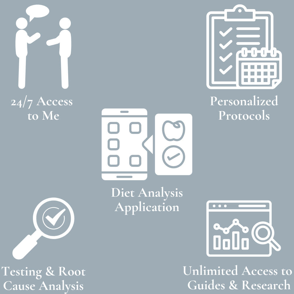 Private health coaching to help you identify & truly resolve the root causes of your health issues using proven methods.